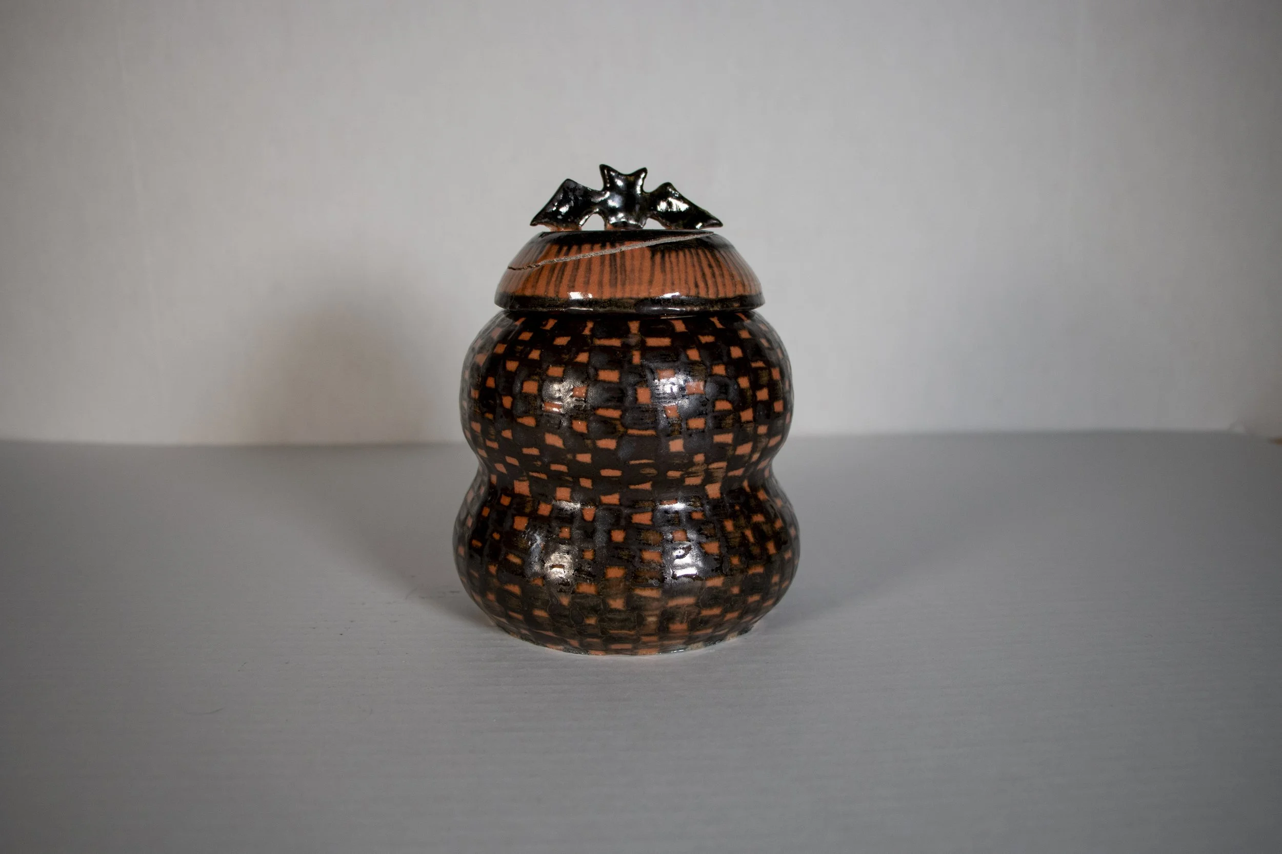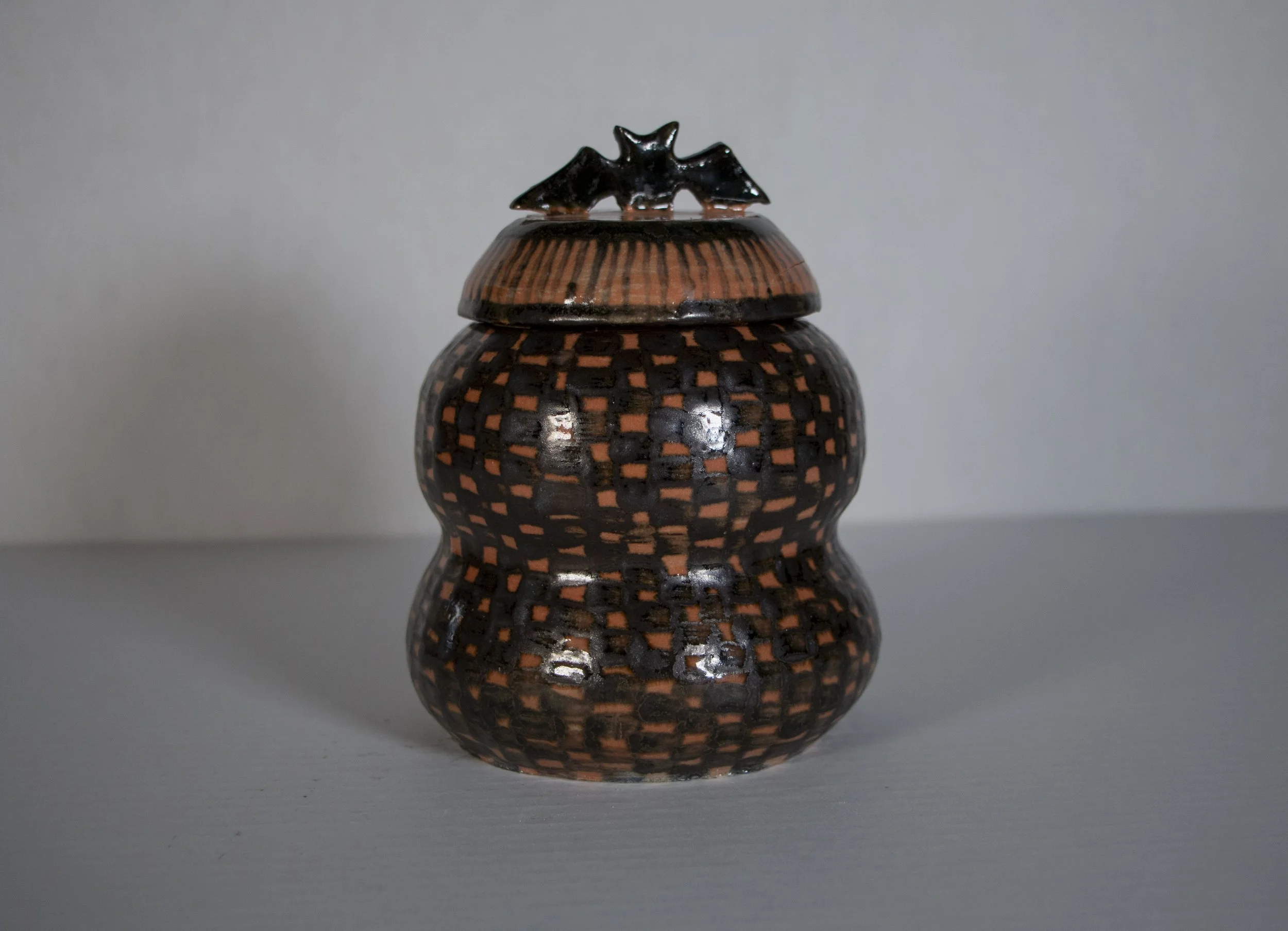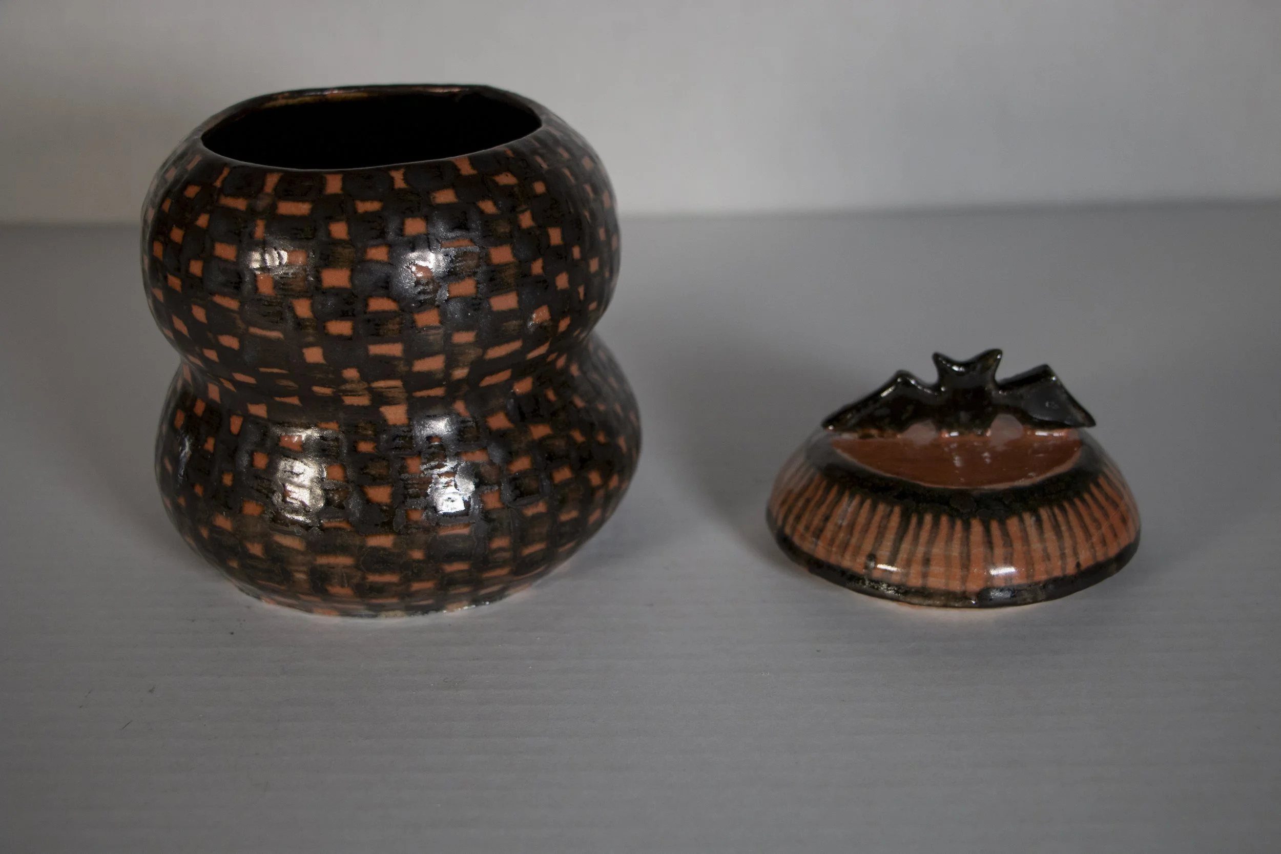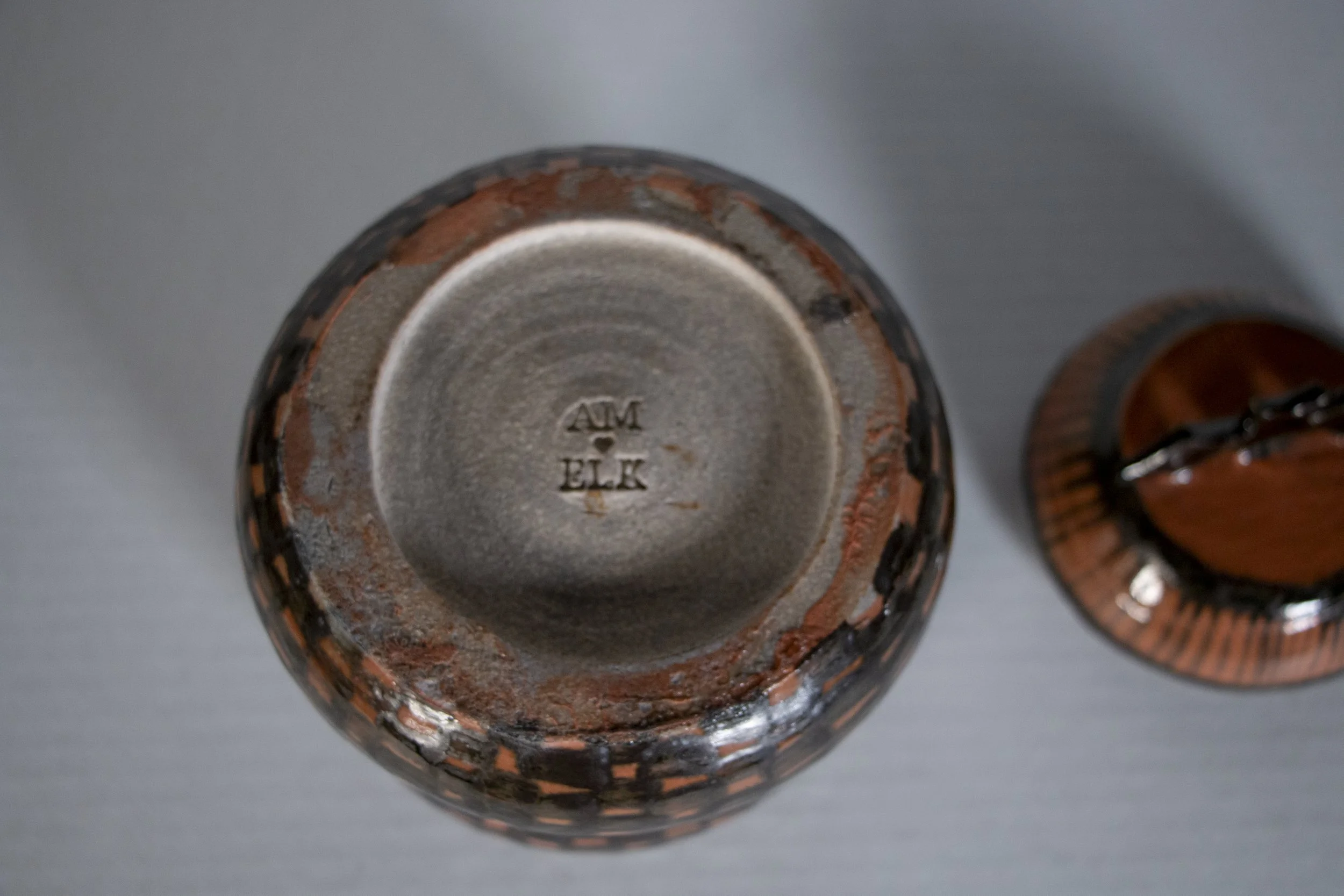 This bowl was thrown on the wheel and glazed with Woo Blue under Reitz Green. It gave it this very chemically looking effect in the glaze. Almost like sea salt in water colors.
