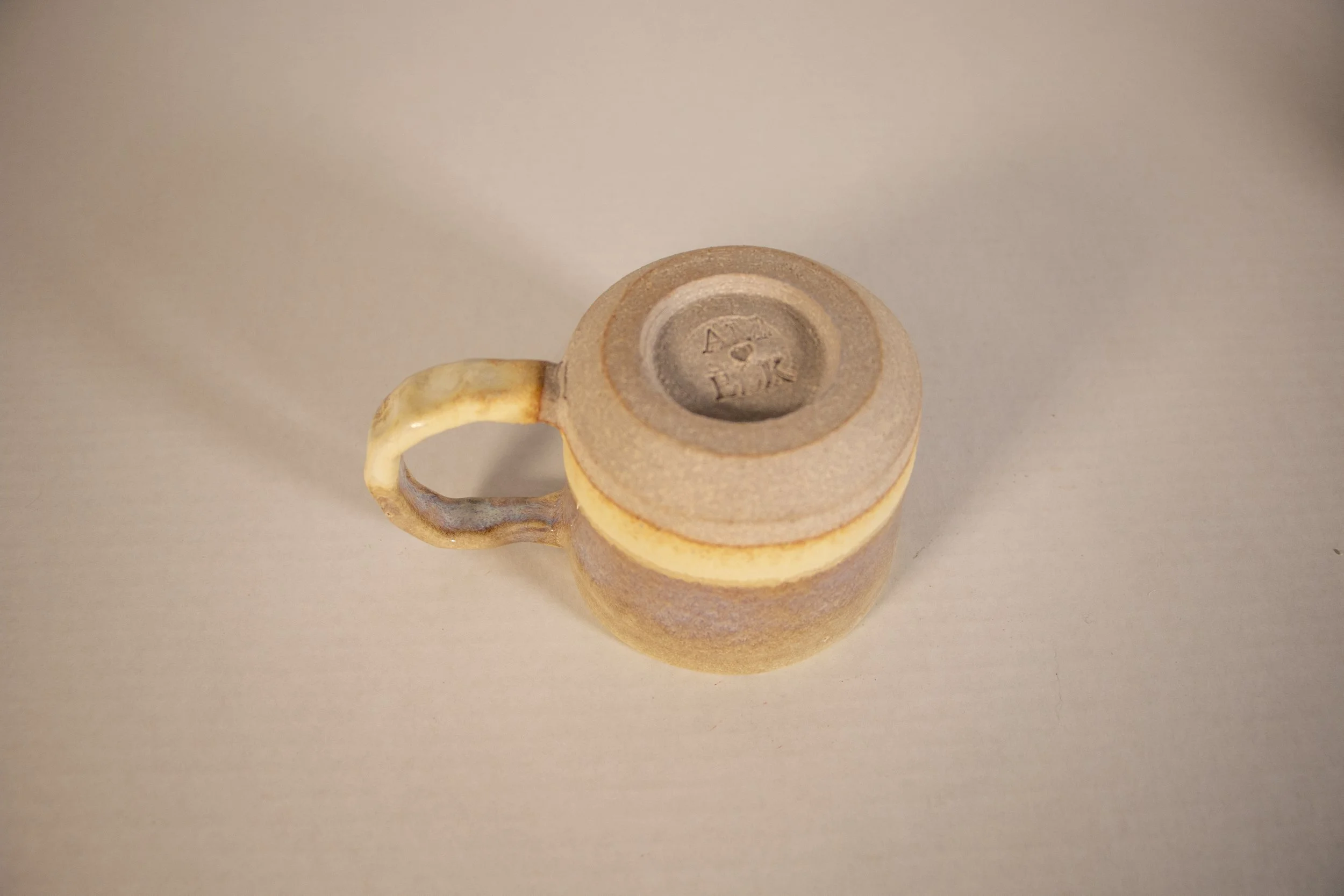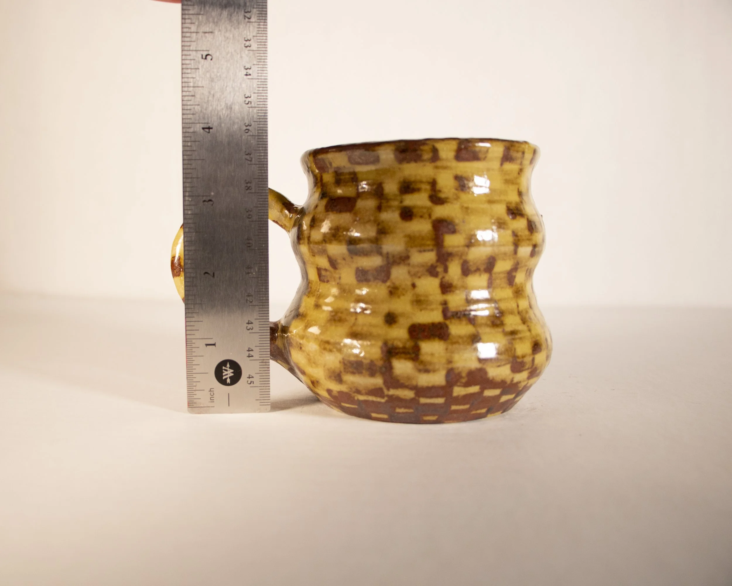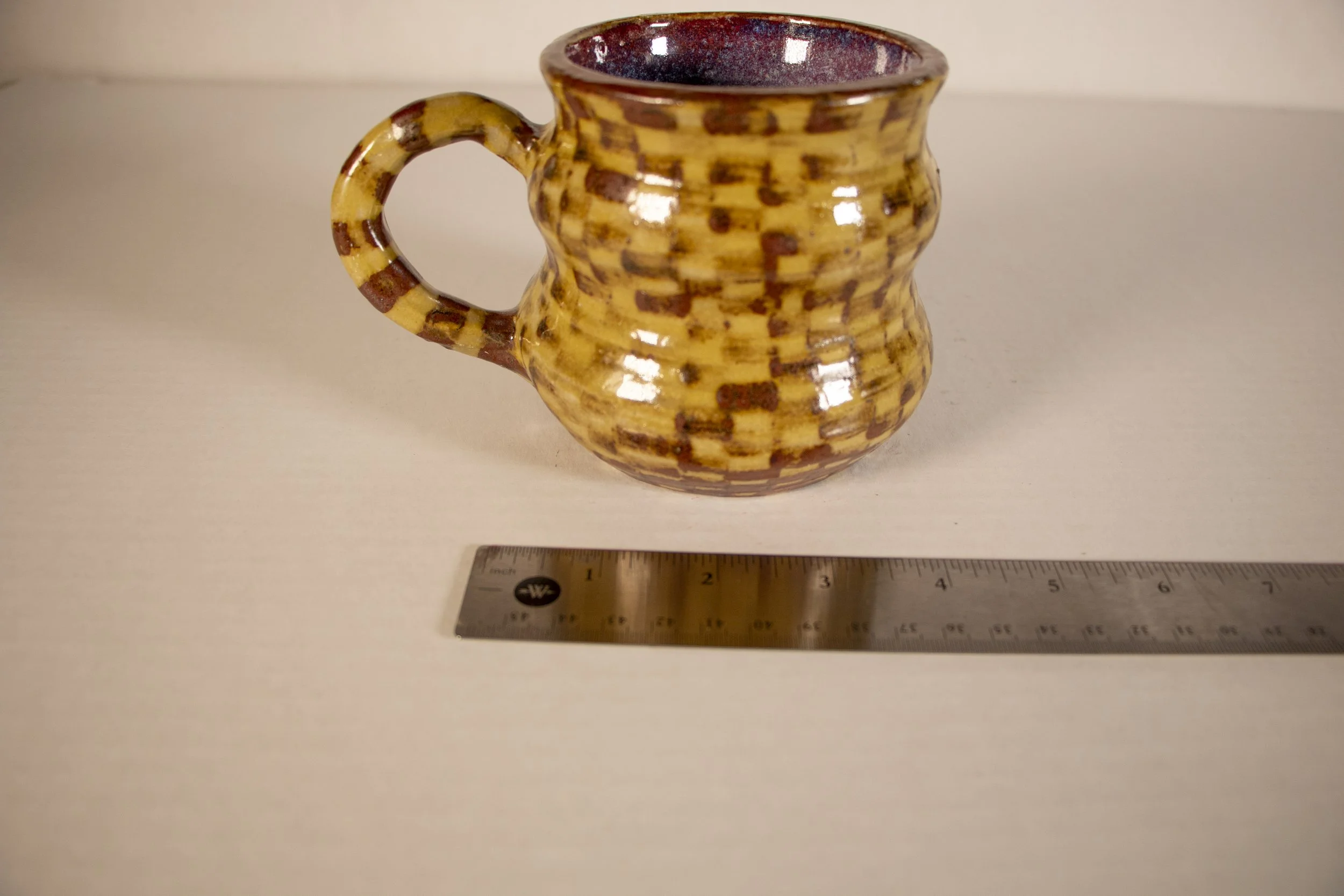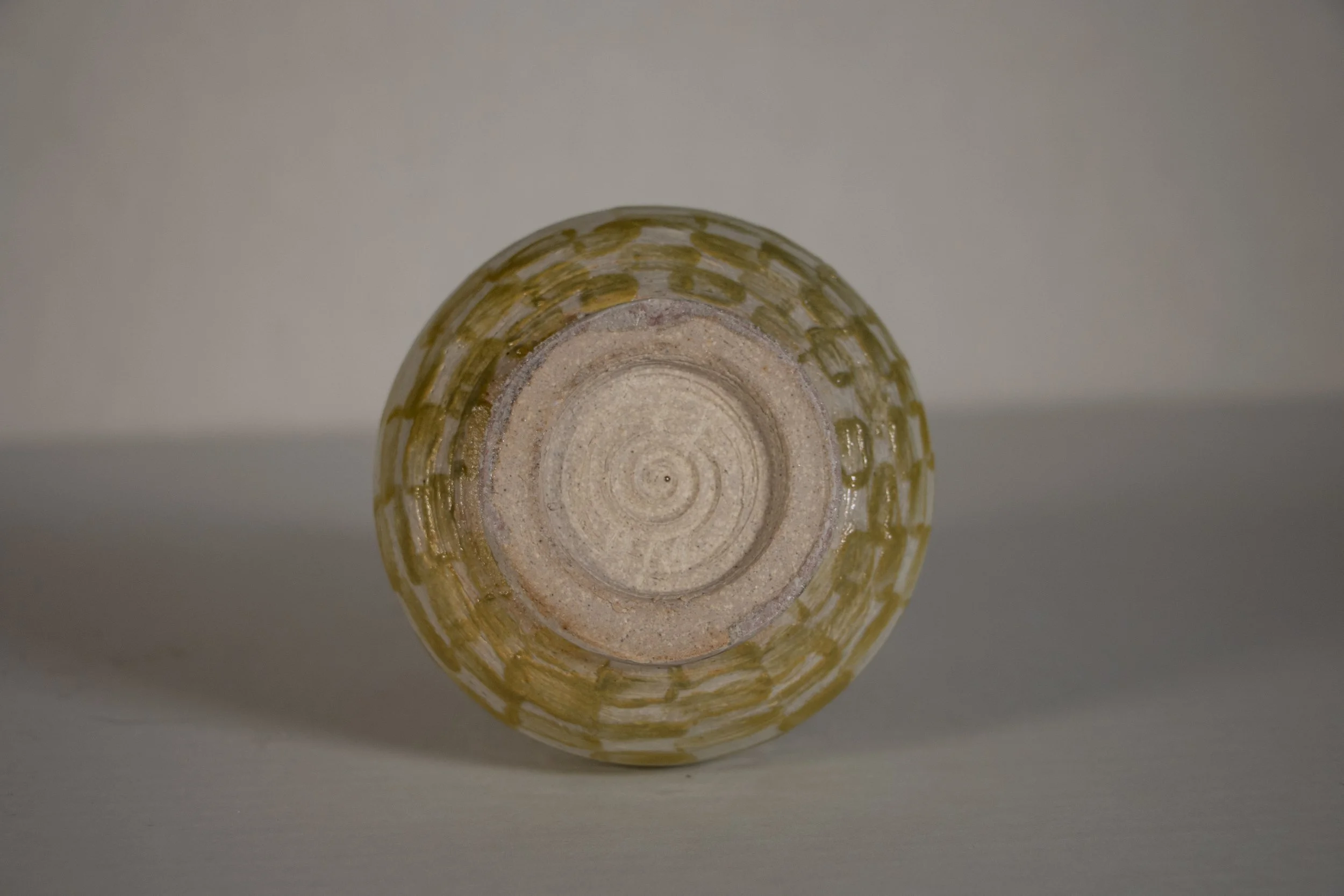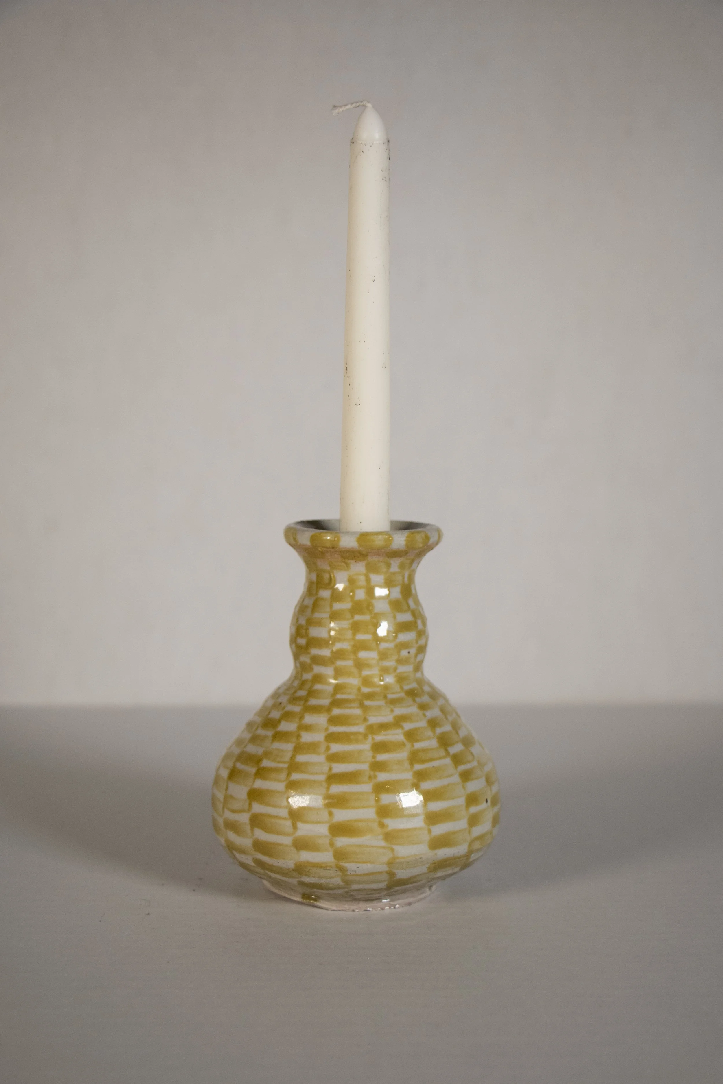 This vase was thrown on the wheel and then fired using the Raku method giving it it’s super shiny exterior!
