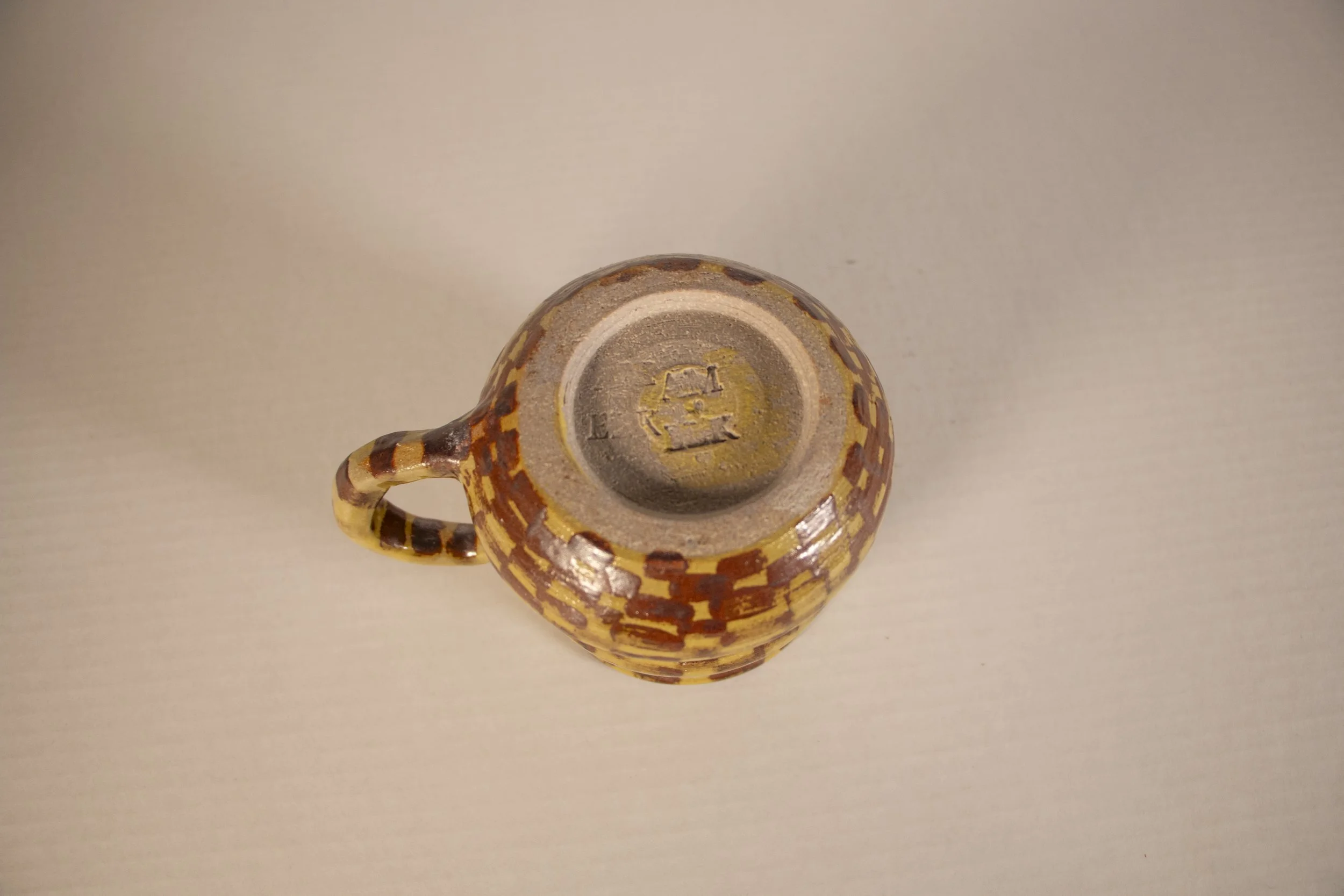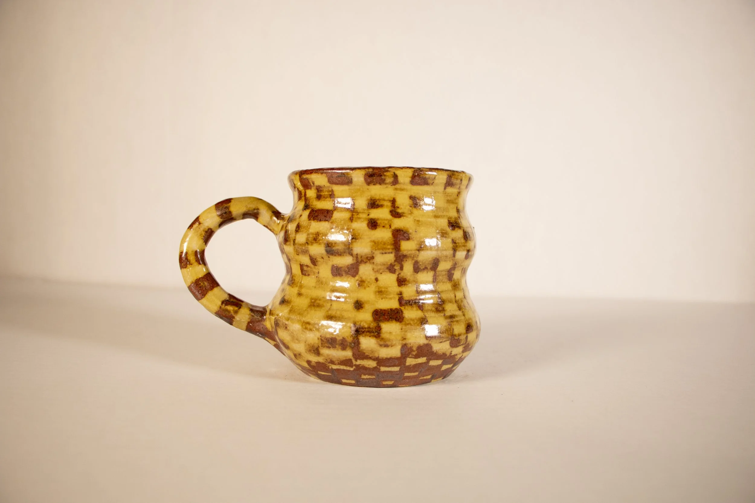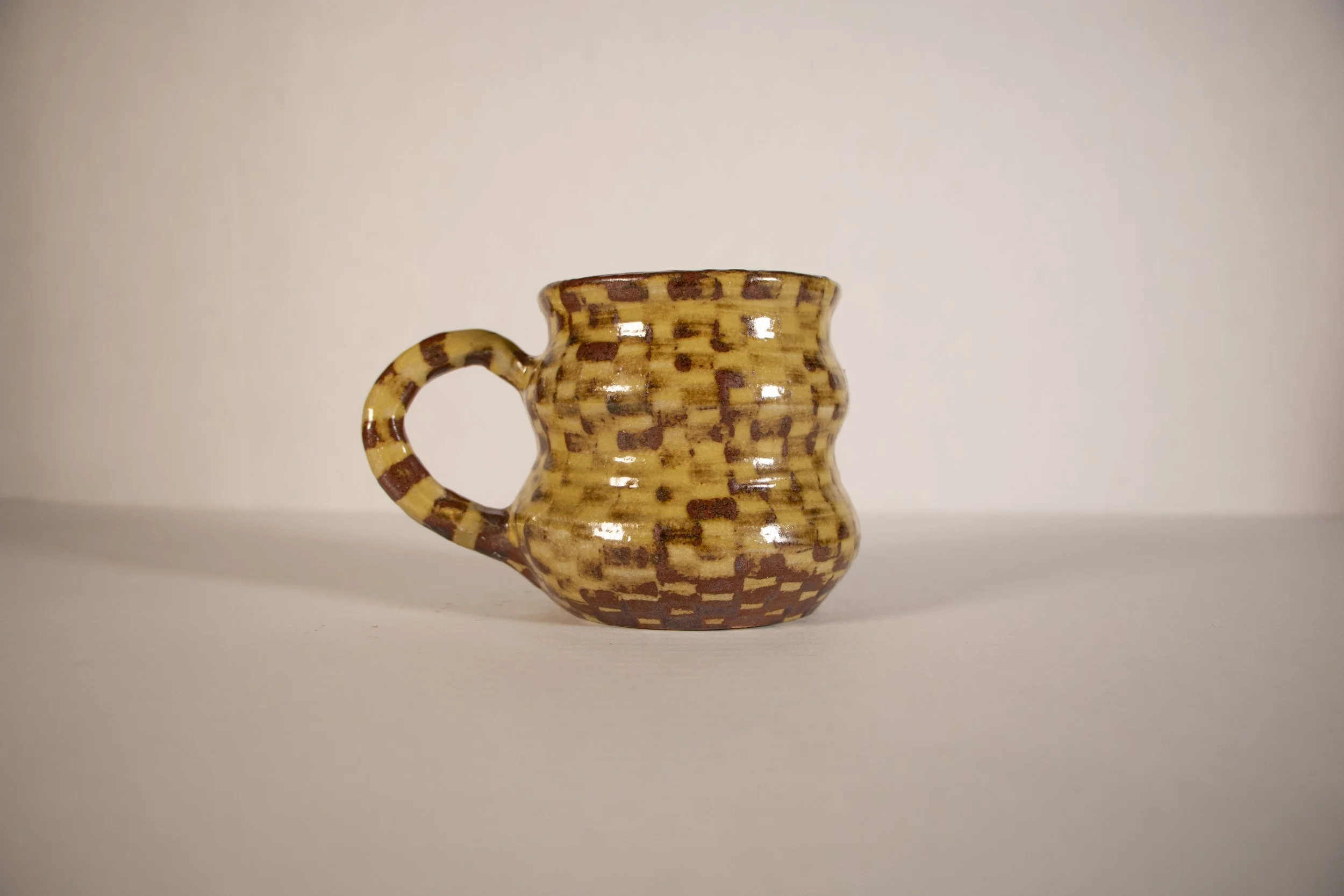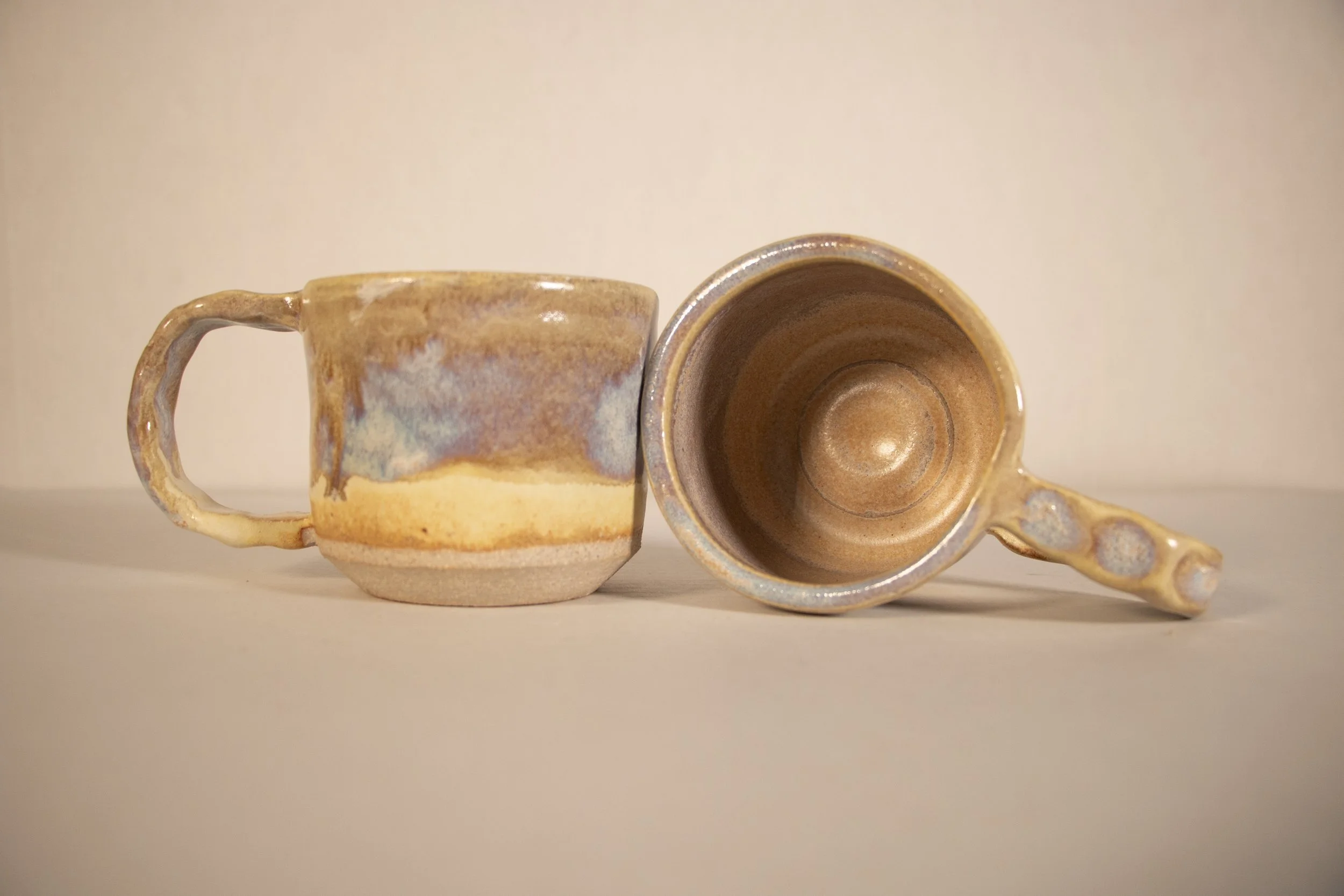 This vase was thrown on the wheel and then fired using the Raku method giving it it’s super shiny exterior!