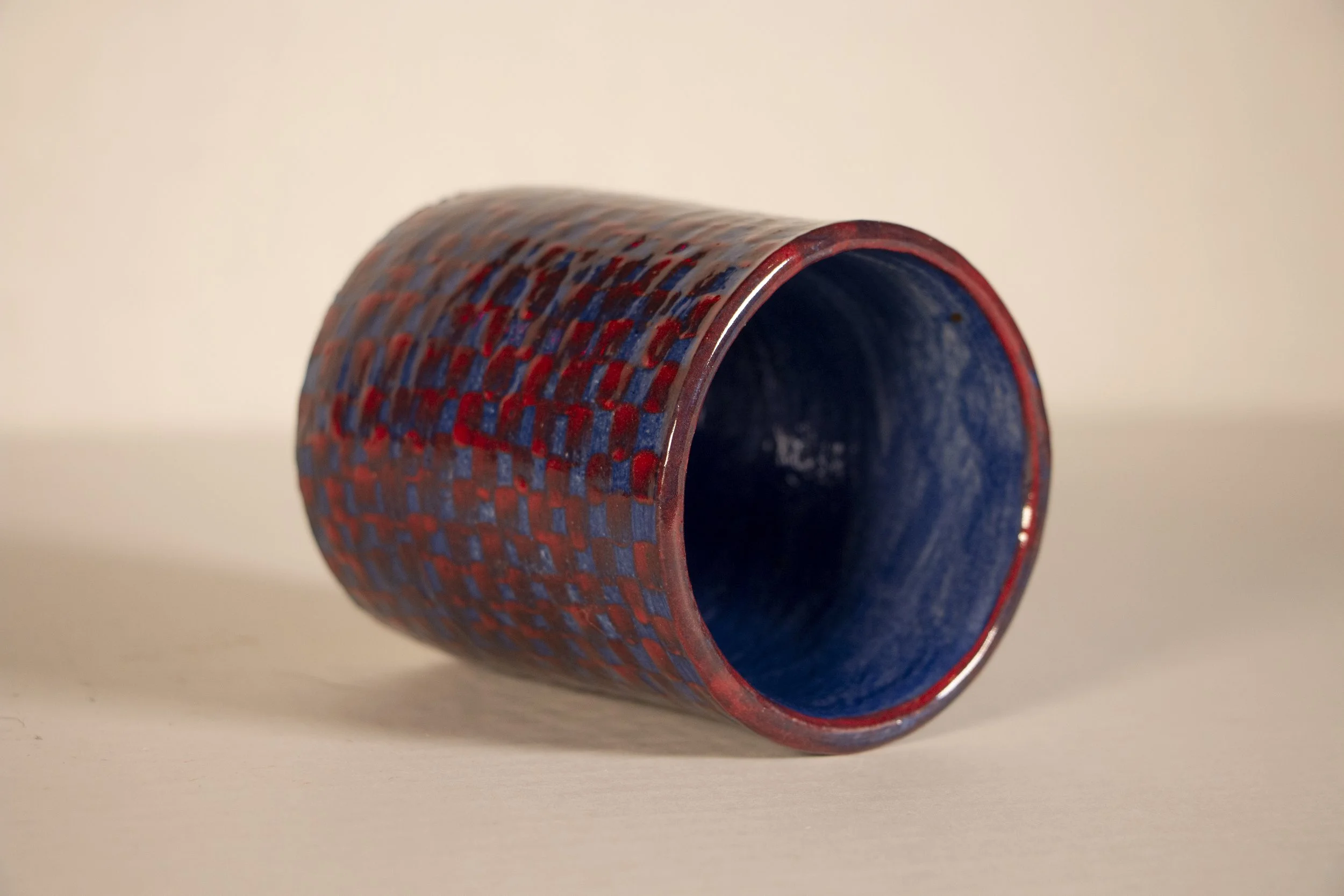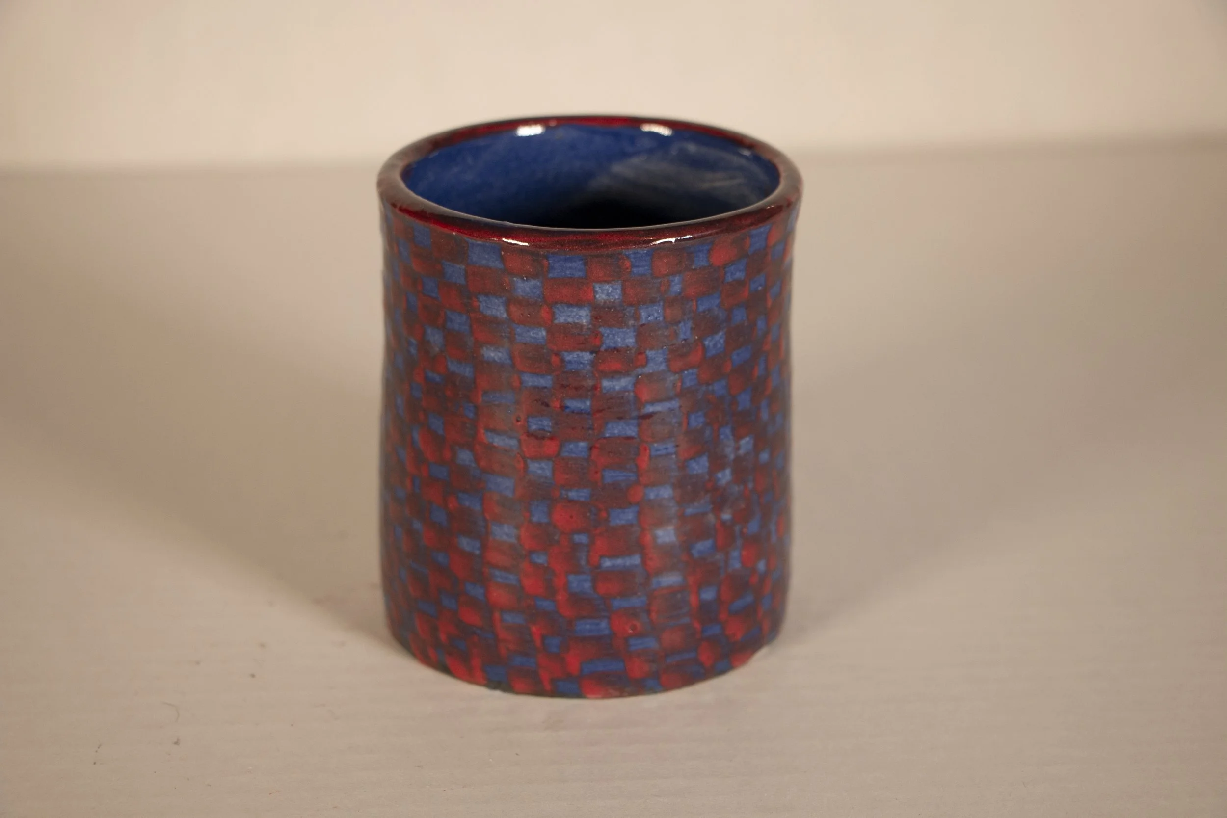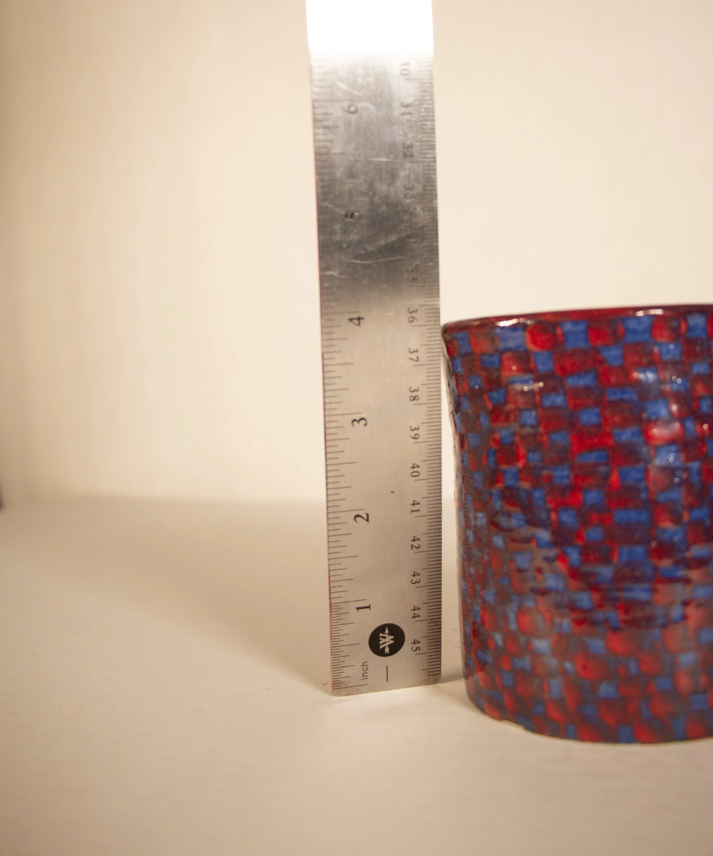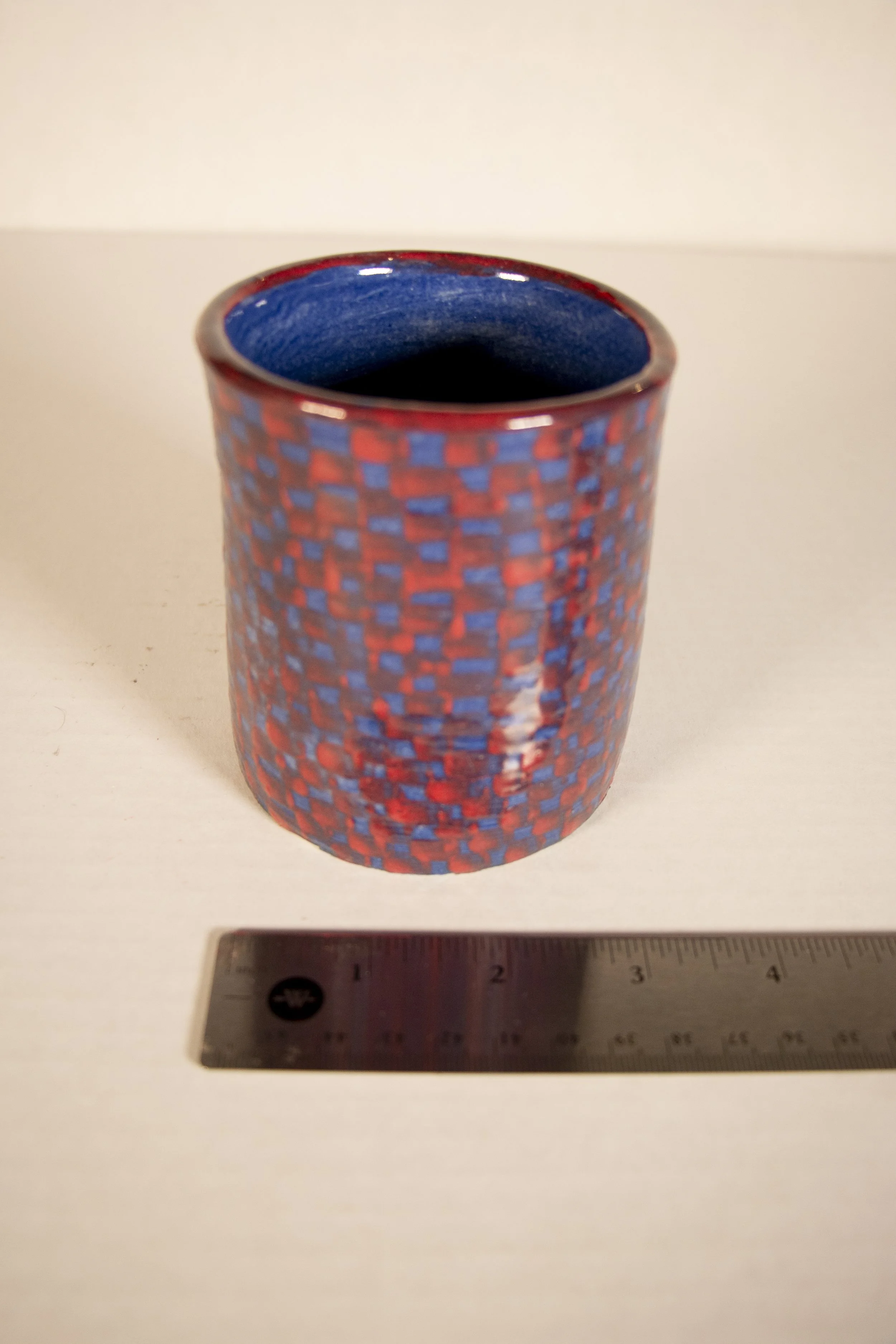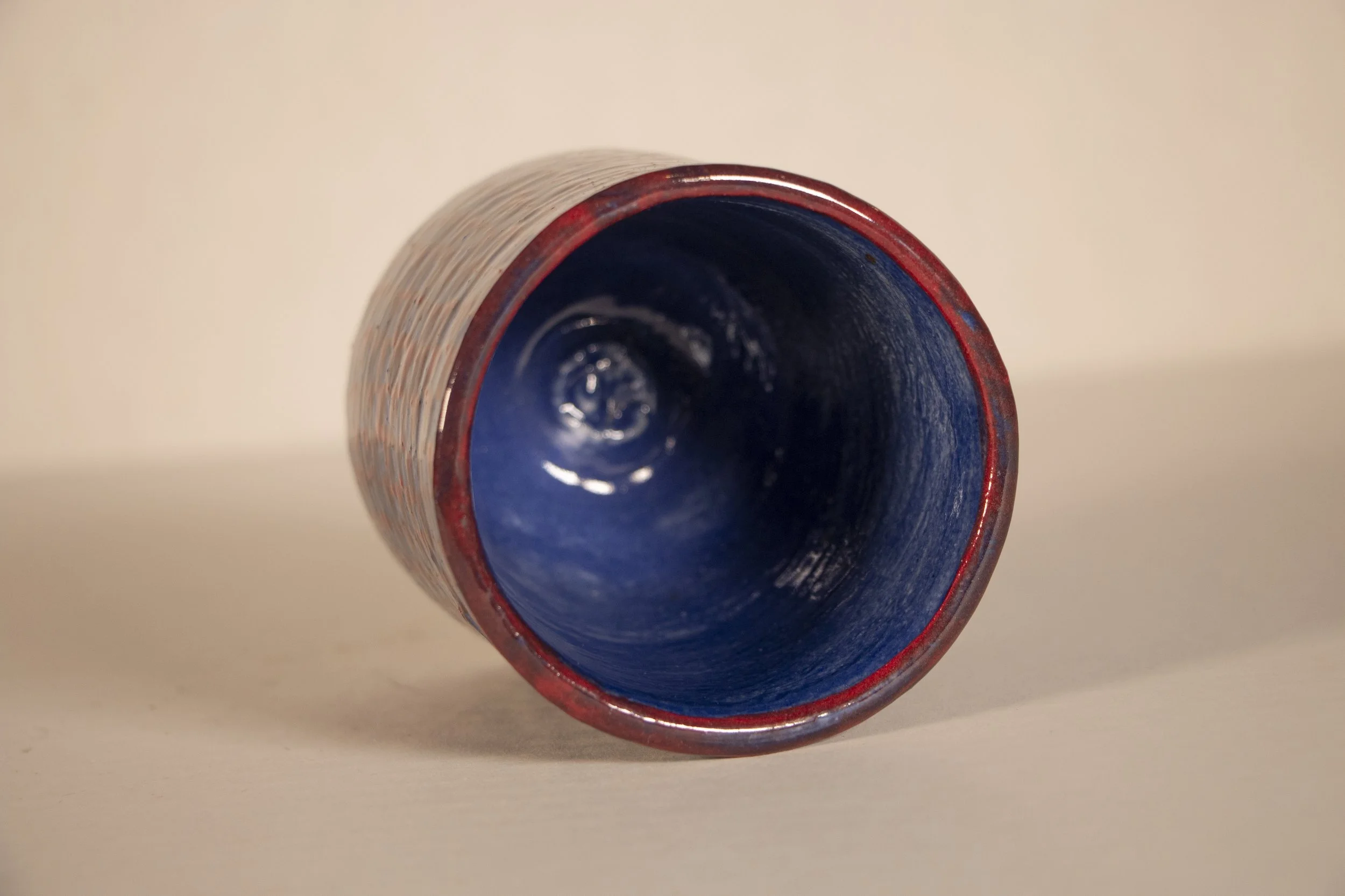 The inside measures to 5 inches. This vase was thrown on the wheel and I used a cheese slicer to give it the the geometric pattern.