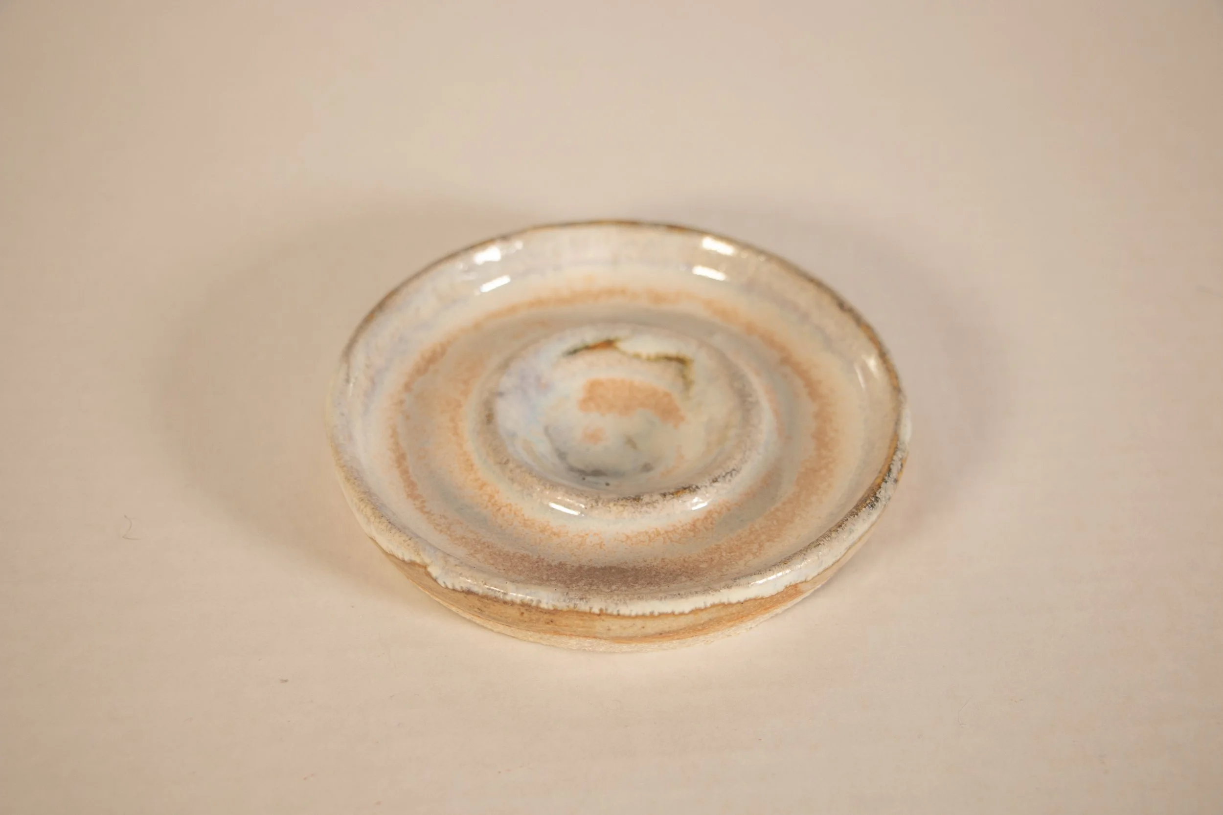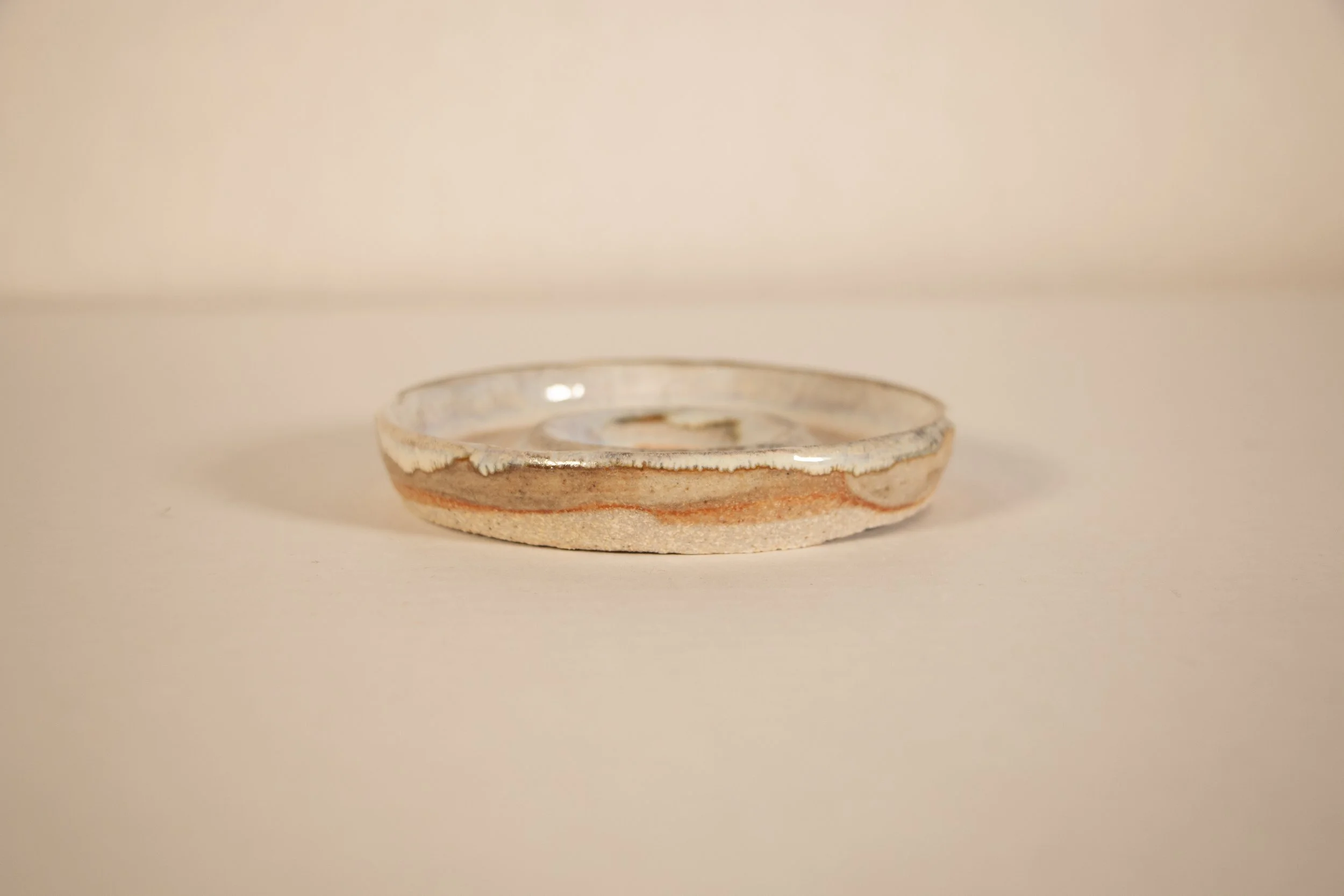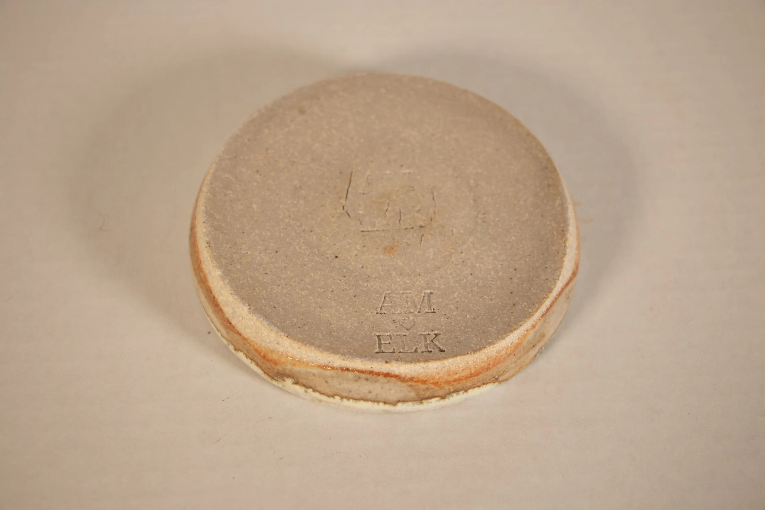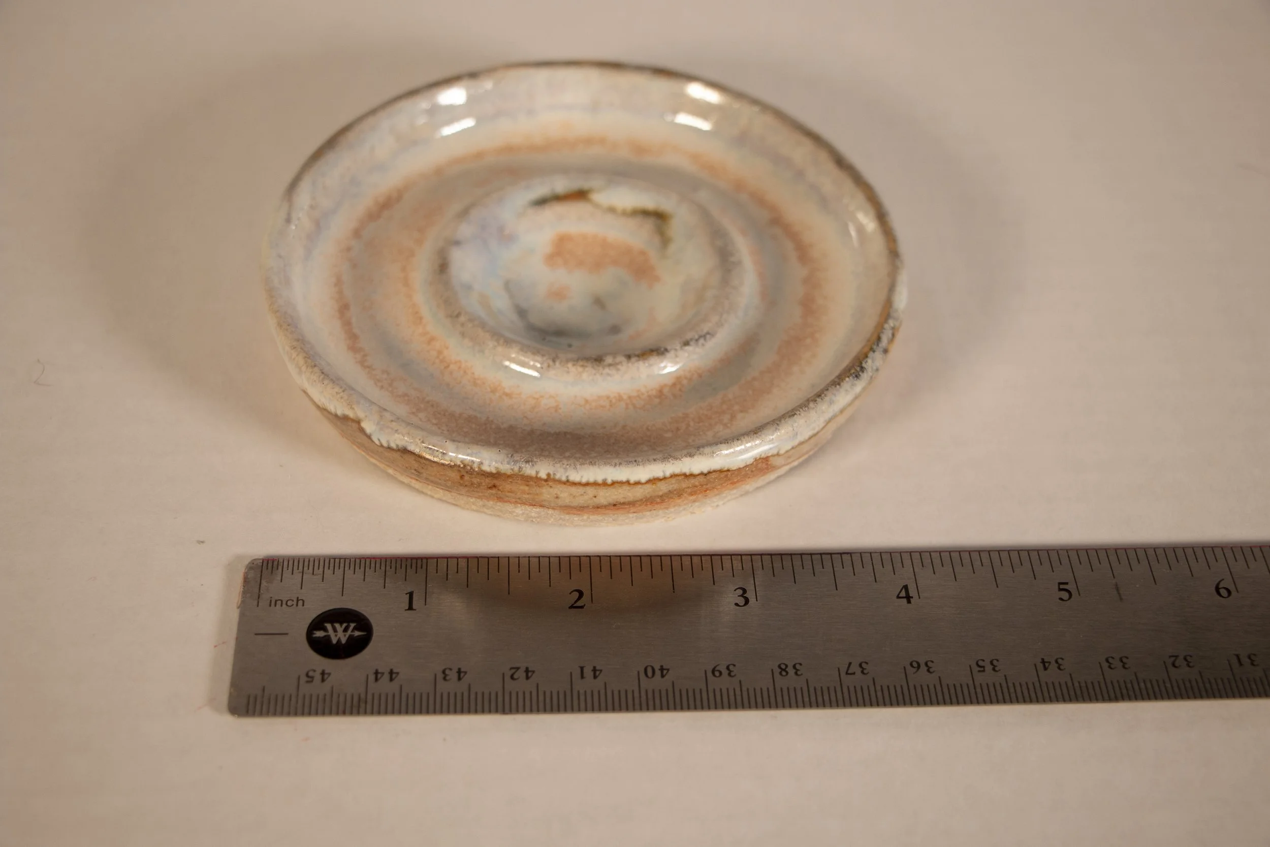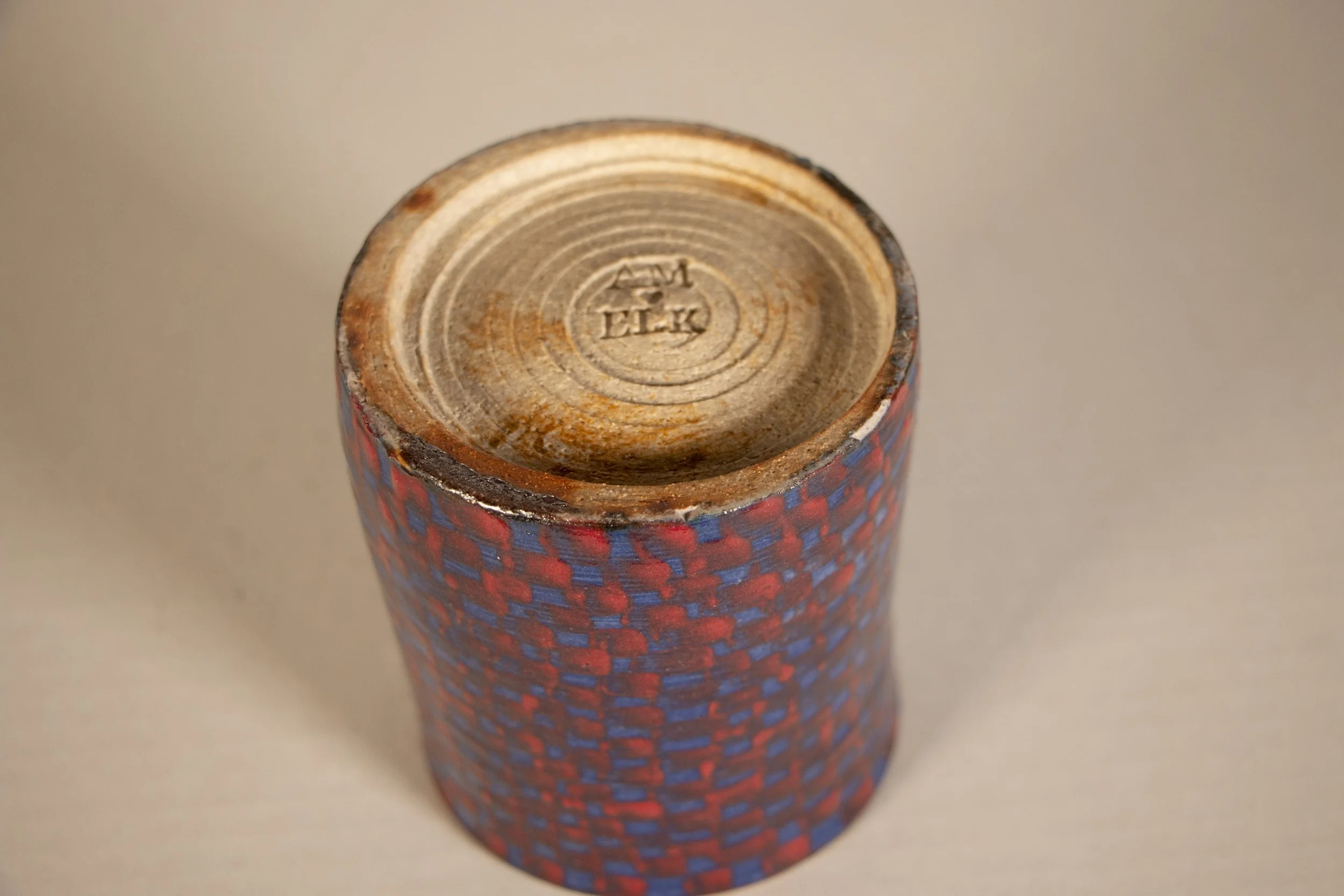 The inside measures to 5 inches. This vase was thrown on the wheel and I used a cheese slicer to give it the the geometric pattern.