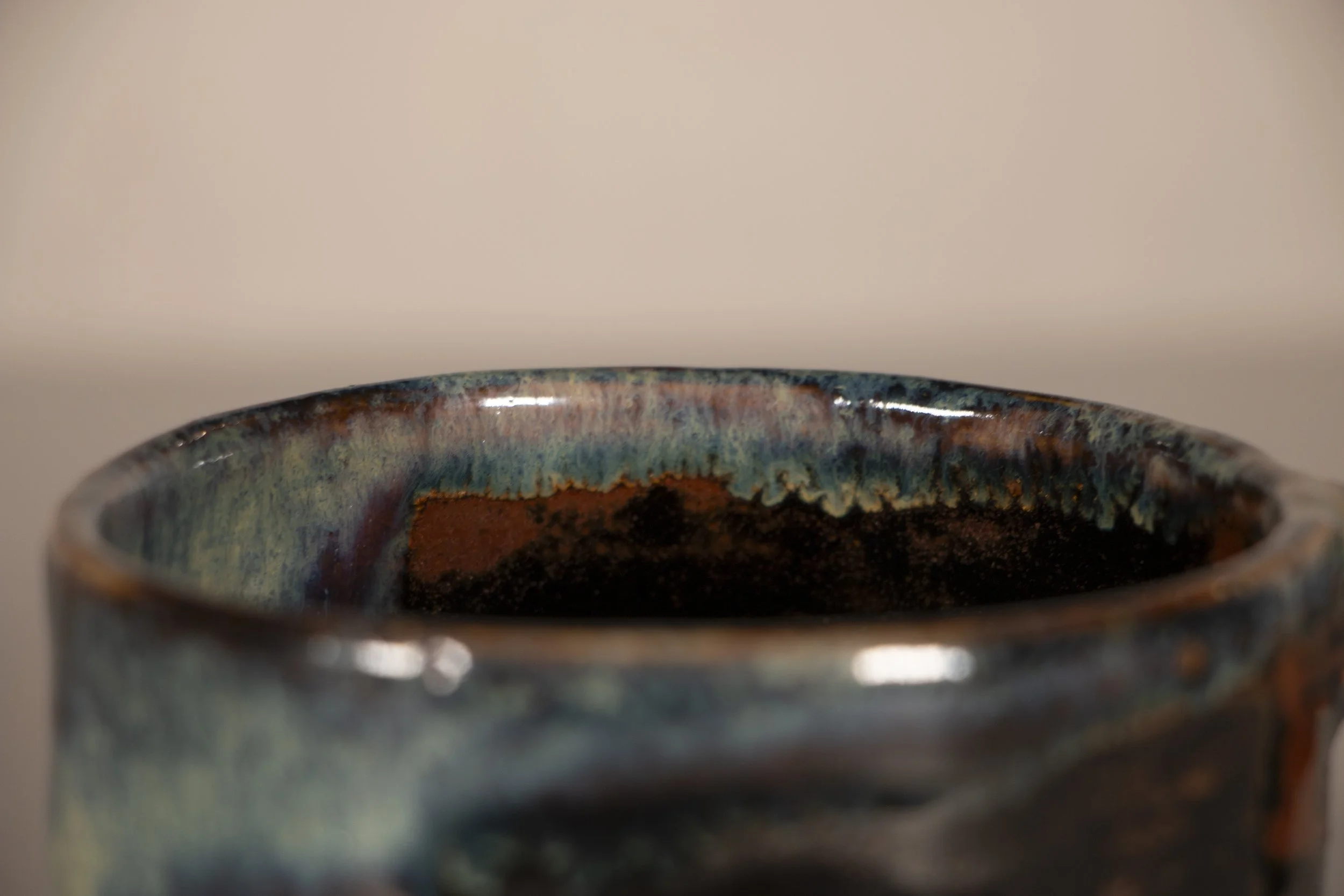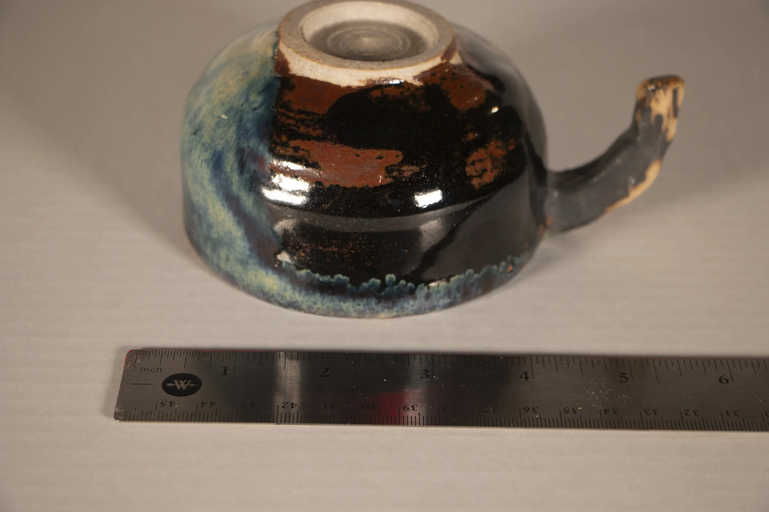 The outside has a simple clear glaze with Woo Blue on the inside.